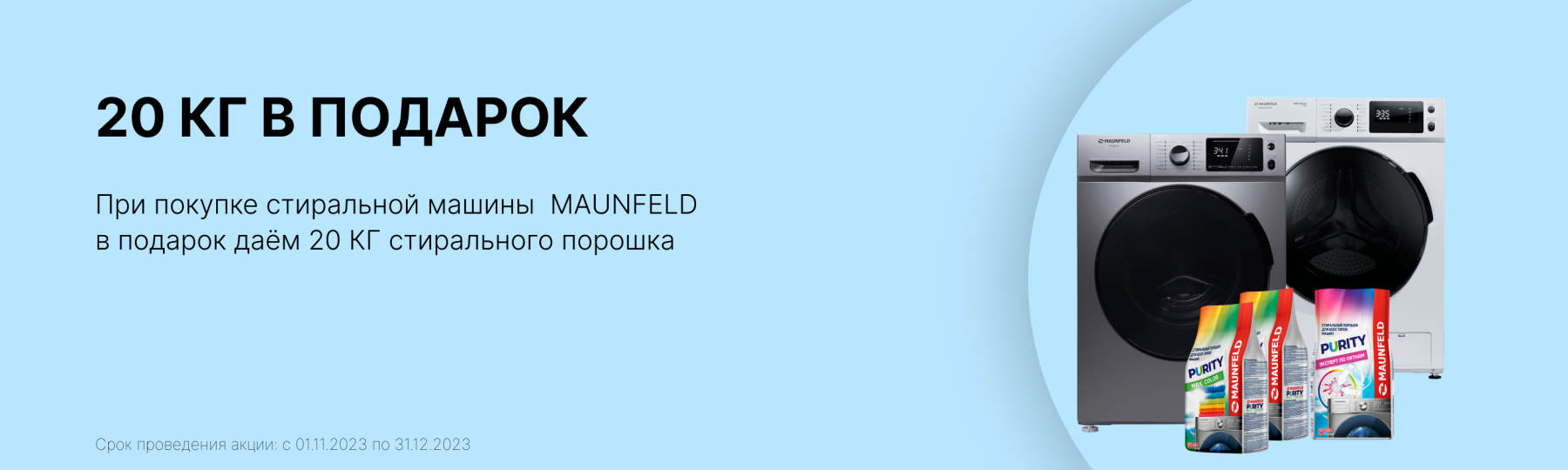 При покупке стиральной машины MAUNFELD, дарим 20 кг стирального порошка!